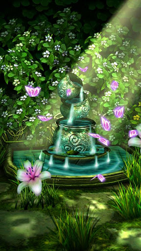 This live wallpaper features a verdant animated Irish forest with a charming fountain in the center. The three-dimensional dynamic scene includes animated water, shamrocks, cascading sunlight, and more. Tap the screen to cause fireflies and fairies to float through your garden.