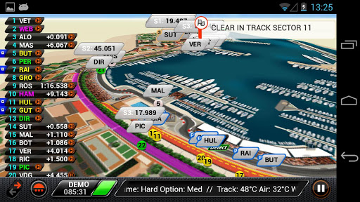 Access live timing and track positioning on timing screens and fully interactive 3D maps for all F1™ sessions over a race weekend, for the entire 2013 Formula One World Championship™.